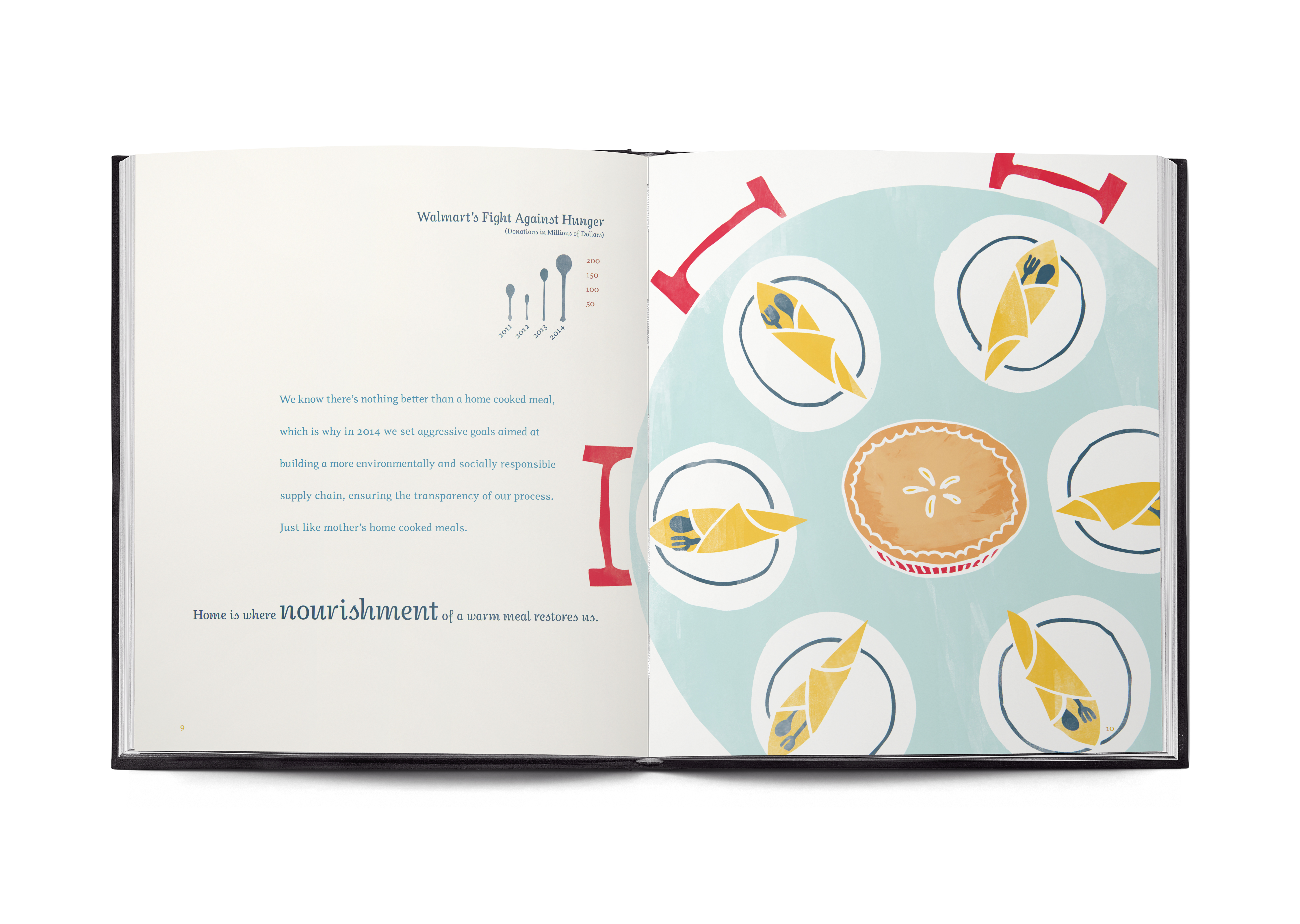 For their 2012 annual report, I designed a seriese of illustrations and patterns that might better communicate the sense of Home Walmart seeks to strengthen.
